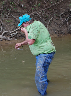 Matthew came up for a fun day or mudding and creek riding. Our neighbor, Perry, joined on his 4wheeler, too. They went in the mud first, which I didn't get pictures of, then the headed to the creek to "wash off".